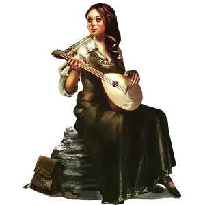 Clothes Ausrüstung und Tracht: Barden tragen einfache Kleidung ihrer Kultur und haben selten mehr als einen Dolch als Waffe dabei. Skalden führen gelegentlich noch eine Orknase mit sich herum. Alle Musikanten hingegen besitzen ein Musikinstrument, z.B. eine Leier, eine Flöte oder eine Handharfe. Wenn sie viel herumreisen, benötigen sie zudem noch allgemeine Reiseausrüstung, etwa Zelt, Feuerstein und Stahl, Decken und einen Rucksack.