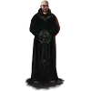 | Clothes | Ausrüstung und Tracht: Der Borongeweihte trägt üblicherweise eine schwarze, mit einer Kapuze versehene Kutte. Außerdem führen fast alle Geweihten Phiolen mit gesegnetem Salbungsöl bei sich. Kommt es zum Kampf, so können die Geweihten nicht nur auf Dolche zurückgreifen: Um Knochen von Skeletten oder anderen Untoten zu zertrümmern, wird der Rabenschnabel verwendet, ein gesegneter Kriegshammer. |
