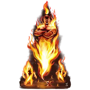 Im Vergleich zu Feuergeistern sind Dschinne des Feuers beeindruckende Gestalten. Meistens zeigen sie sich als große Männer oder Frauen, deren Unterleib in einer Flammenwolke endet. Sie wirken auf den ersten Blick grimmig, aber viele Feuerdschinne teilen die Neugier der Feuergeister, eine Eigenschaft, die ihrem Element anhängt.