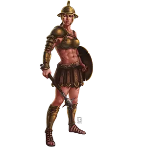 | Clothes | Ausrüstung und Tracht: Da Gladiatoren nur selten über eigene Geldmittel verfügen, sind sie ebenso selten in Besitz von eigenen Waffen und Rüstungen. Wenn sie die Wahl haben, nutzen sie die Waffen, mit denen sie in ihrer Gladiatorenklasse ausgebildet wurden: Kurzschwert, Speer, Brabakbengel, Wurfnetz oder Dreizack. Einige Gladiatoren kämpfen gerne ohne Rüstung, andere hingegen sind Schild, Helm und schwerer Plattenrüstung nicht abgeneigt – Hauptsache, es sieht eindrucksvoll aus. |