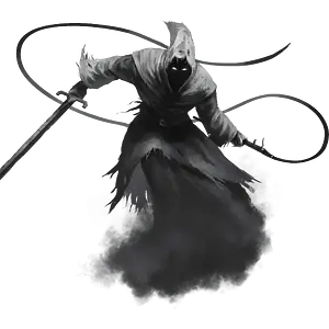 Rot glühende, blutnebeldampfende Augen und triefende, eitergelbe Krallenhände, die Krummschwert und Peitsche gegen die Feinde der Finsternis führen, sind das Einzige, was unter der schweren schwarzen Kutte des Heshthot auszumachen ist.