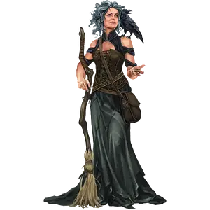 | Clothes | Ausrüstung und Tracht: Ihre Kleidung wählt die Rabenhexe je nach Lebenslage. Sie kann auffällig sein, wenn sie mit Gauklern mitzieht, oder einfach, wenn sie sich tarnen will. Meist trägt sie einen Stab bei sich, der ihr als Fluggerät dient, aber auch andere hölzerne Alltagsgegenstände kommen infrage. Ansonsten reist sie selten ohne ein kleines Sammelsurium an merkwürdigen Dingen: Boltankarten, eine Kristallkugel, Amulette zum Verkauf an die Leichtgläubigen. |