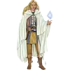 | Clothes | Ausrüstung und Tracht: Wie jeder Elf sollte der Zauberweber ein persönliches Instrument und einen Elfenbogen besitzen. Ansonsten wird er nicht viel Wert auf weiteren Besitz legen und höchstens noch Heilkräuter und einen Dolch sein Eigen nennen. Gelegentlich kommt es vor, dass ein Zauberweber einen besonderen Gegenstand mit sich führt, der sein Interesse geweckt hat. Das kann ein menschliches Zauberbuch sein, dessen Schrift er nicht versteht, ein magischer Gegenstand, den er in seinen Wäldern gefunden hat, oder eine dem Namenlosen geweihten Basiliskenzunge, die er an einen sicheren Ort bringen möchte. |